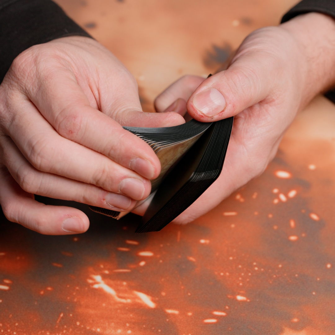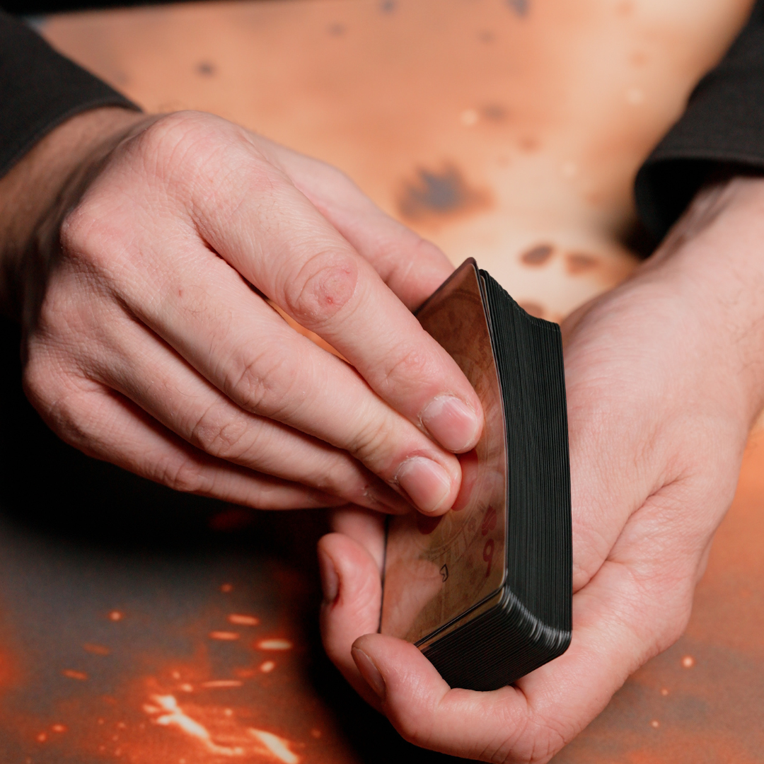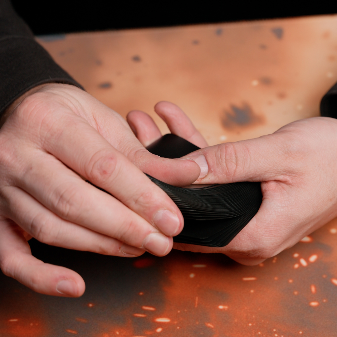 We designed the P’kup™ Infinity Curve to solve exactly that. The rounded-corner build removes the edge bite while maintaining the stiffness and rigidity serious play demands. After a short break-in, the sleeves shuffle smoothly and feel as natural as handling raw cards – only now with premium protection built in.